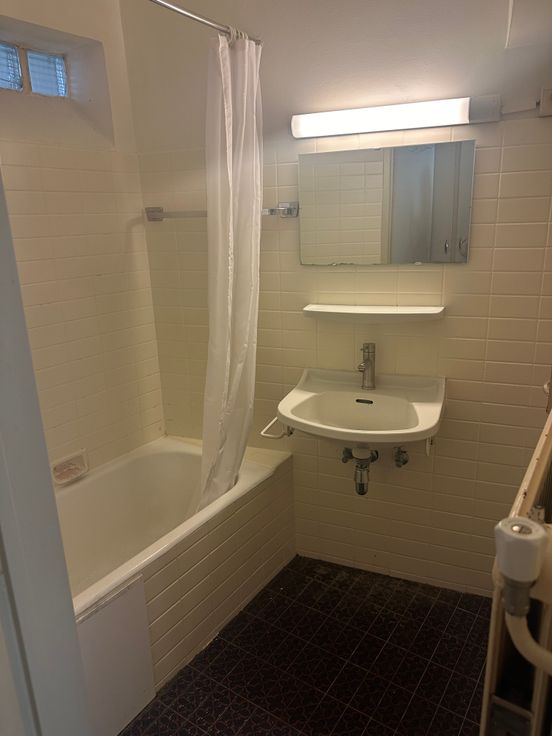 De studio heeft een aparte inkomhal met ingebouwde kast.De badkamer is voorzien van bad met douchefunctie en een wastafel.Er is een apart toilet.
