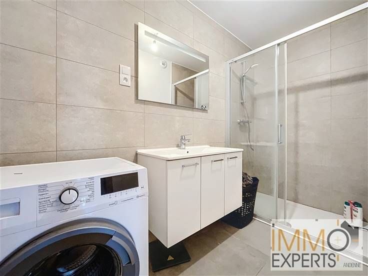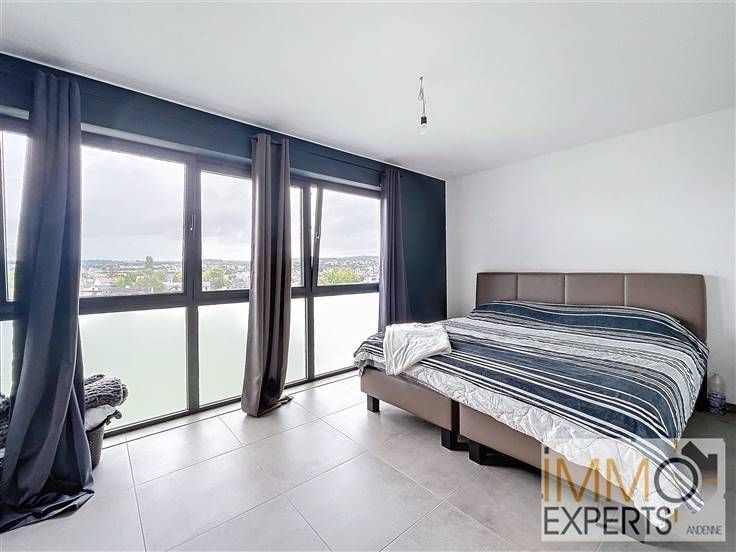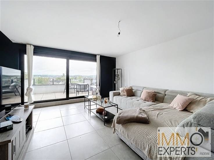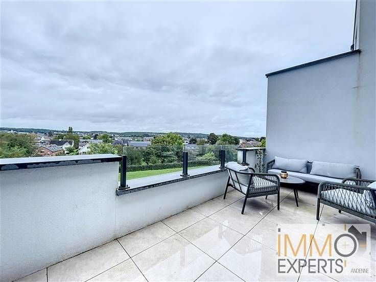 - Au 1er étage : un hall d'entrée, un séjour avec coin cuisine super-équipée et une terrasse avec vue panoramique sur la ville d'Andenne,