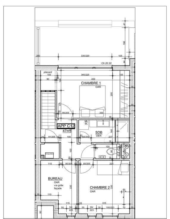 - Au 2ème étage : deux chambres, un espace bureau, une salle de douche, un WC et un local buanderie.
