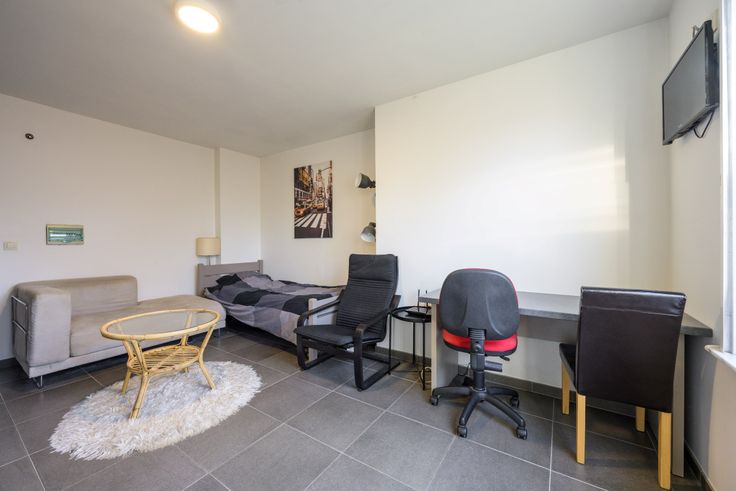 De 10 studentenflats van elk ca 18m² zijn allemaal smaakvol ingericht met koelkast, bureau met bureaustoel, bed, kast en aanrecht. Tevens voorzien van gordijnen.