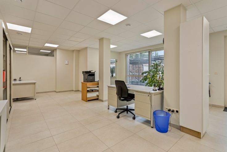 Huidige inrichting : wachtzaal, ontvangstruimte, landscapekantoor, een kitchenette, sanitaire ruimte en een technische berging . Bij deze eigendom hoort eveneens een privatieve garagebox.