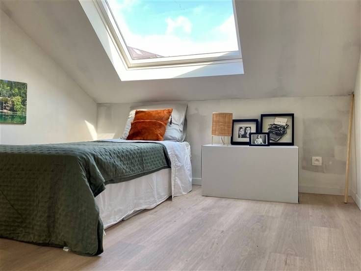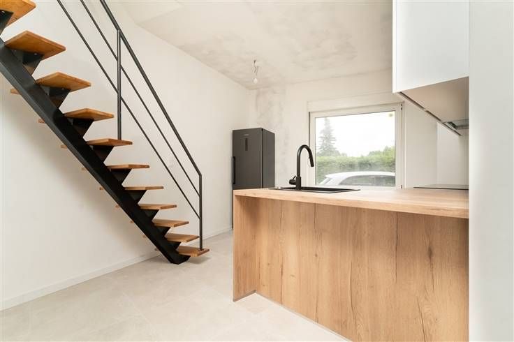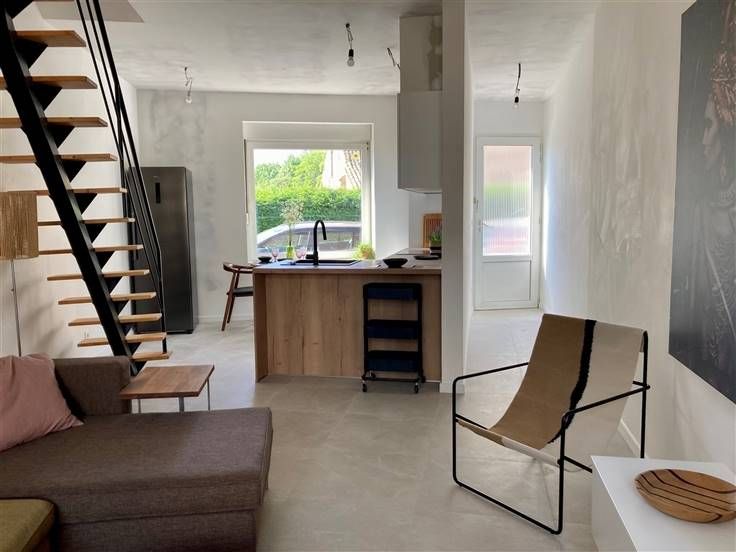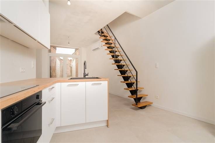 Starterswoning op toplocatie nabij centrum, station en het Mechels Broek Deze originele en volledig gerenoveerde woning heeft een uitstekende EPC-score en biedt een perfecte kans voor starters of investeerders. Bij binnenkomst gaat u langs een wand die de inkomhal afscheidt van de keuken, de enige muur op het gelijkvloers. De nieuwe keuken met ontbijtbar is voorzien van alle comfort. De woonkamer heeft een open structuur, een stijlvolle trap en een groot raam in de achtergevel. Hierdoor wordt de buitenruimte het verlengstuk van de woning. . Op de eerste verdieping bevindt zich een nieuwe badkamer met een inloopdouche, modern dubbel lavabomeubel en elektrische handdoekdroger. Daarnaast is er een apart toilet en de masterbedroom. De trap loopt door naar de tweede verdieping, waar een open ruimte wacht die perfect kan dienen als bureau, hobbykamer of extra slaapkamer. Hier is ook de uitschuifbare zoldertrap voorzien, wat zorgt voor extra opbergruimte. Verder vindt u hier de tweede slaapkamer. Deze energiezuinige woning wordt verwarmd en gekoeld met een airco/heating-systeem gekoppeld aan een warmtepomp en is asbestveilig. Een ideale woning om zorgeloos te starten! Uitstekende ligging De woning ligt op wandelafstand van het station, het centrum en dichtbij invalswegen.