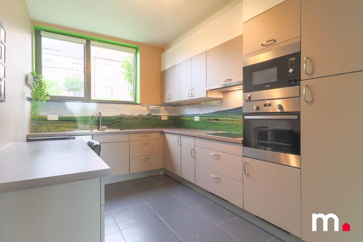 Een lichtrijke open leefruimte aansluitend is er een volledig uitgeruste open keuken met topkwaliteit apparatuur: oven, microgolf, vaatwasser, enkele spoelbak, frigo, en dampkap.
