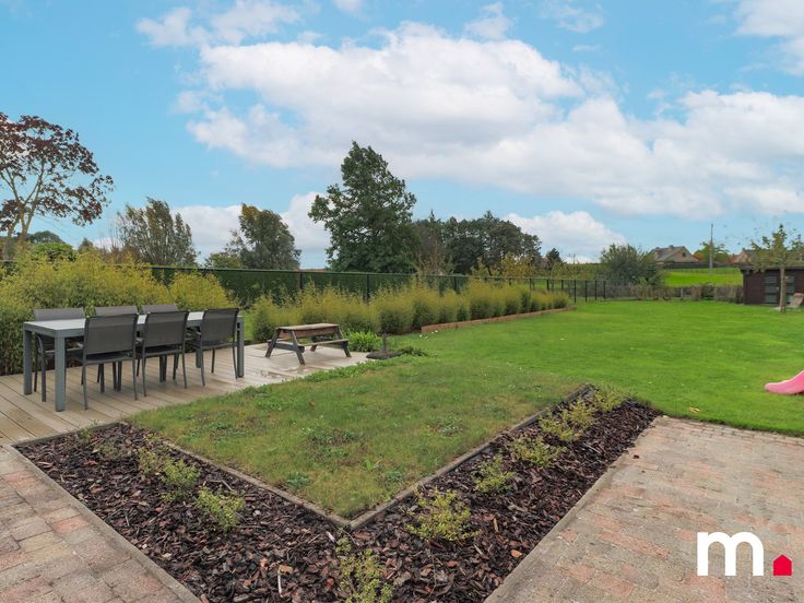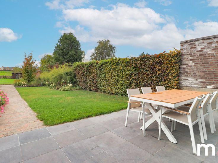 Aansluitend aan de keuken vindt u de lichtrijke leefruimte met een prachtig zicht op de zuid gerichte tuin. Deze tuin is aangelegd met oog voor detail en biedt een oase van rust en ontspanning een aangelegd terras en een wandelpad leiden naar het aangelegde 2de terras en ruime garage die zowel kan dienen als opbergplaats of als hobbyruimte met een directe toegang tot maar liefst 3 parkeerplaatsen.