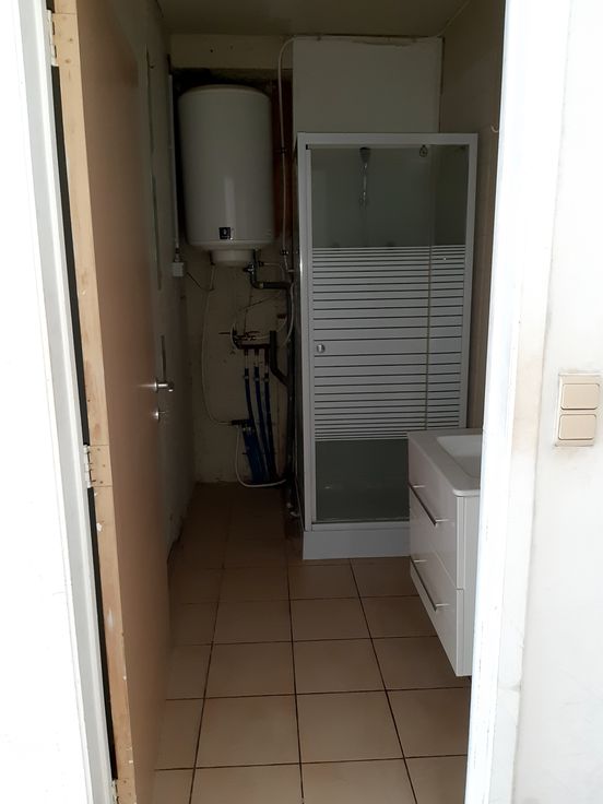 Appartement au rez-de-chaussée : Il est équipé d'une chambre, de la climatisation, et d'une cuisine semi-équipée. Le loyer est de 600 €, avec 45 € de charges mensuelles, comprenant 30 € pour une place de parking privée et 15 € de provision pour l'entretien des appareils de chauffage.