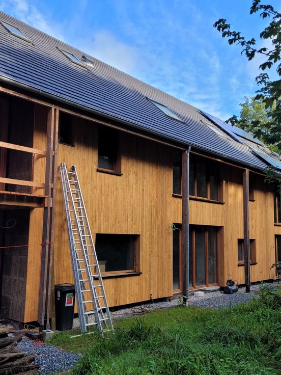 Bienvenue dans la Quintessence de l'Immobilier... A-IMMO.BE vous présente en exclusivité cette fabuleuse MAISON "BIOCLIMATIQUE", en cours de rénovation, qui pourrait se définir comme une symbiose entre le bâtiment (site, forme, matériaux, mise en œuvre,…), le bien être de son occupant, et le respect de l'environnement. Située dans un habitat groupé au coeur d'un environnement boisé et verdoyant, le cadre est idyllique et l'état CASCO de la maison laisse de nombreuses possibilités d'aménagement. La Biodiversité, les Matériaux écologiques (liège, cellulose, laine de bois, .afzélia,...), le PEB A+ (audit énergétique réalisé), le Système de ventilation double flux (VMC), le Système de chauffage (collectivisé—pompe à chaleur air-eau – chauffage par le sol), les Panneaux photovoltaïques, la grande SALLE COMMUNE complètent avantageusement la description. Pour tous renseignements complémentaires, dossier estimatif de fin de travaux et visites : Gaëtan Bougnet : gb@a-immo.be ou (0485/134.768.
