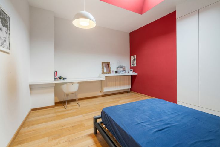 Tweede verdiep: 4 ruime kamers (17, 15, 10 en 9,50 m²) met veel maatwerk/inbouwkasten en een tweede badkamer (douche met toilet).