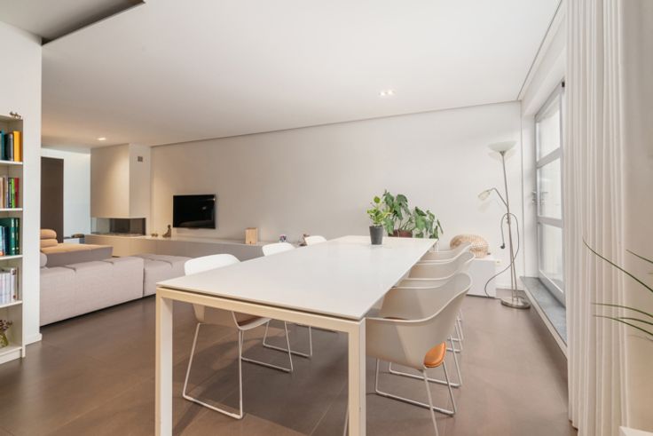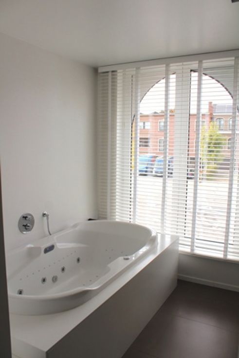 Eerste verdieping: duplex appartement met één en al maatwerk zijnde een leefruimte 55 m² met gashaard, ruime eilandkeuken met eetplaats 30 m², terras 20m², berging 15 m², toilet. Luxe badkamer met sauna, bubbelbad, inloopdouche.