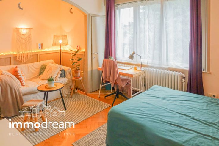 SOUS OPTION !!! SOUS OPTION !!! 01/08/2024 - Ixelles, entre l'Hippodrome de Boistfort et l'ULB (gare de Boendael), au 3ème et dernier étage d'un petit immeuble des années 30', dans un environnement calme, flat de +/- 45m² habitables (55m² bruts) comprenant une pièce de vie en parquet massif de +/-18m² disposant d'une alcôve pour le lit et de placards intégrés de chaque côté, cuisine séparée et équipée avec espace déjeuner 2 pers., machine à laver, salle-de-bains séparée, WC séparé, grand hall d'entrée en parquet avec rangements, balcon avec vue sur jardins. Petite Cave/rangement. Peu de charges. PEB : D+ (158kwh/m²/an). SOUS OPTION !!! SOUS OPTION !!! 01/08/2024 -