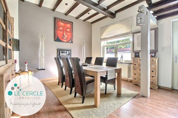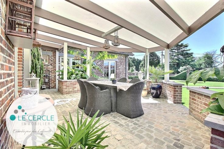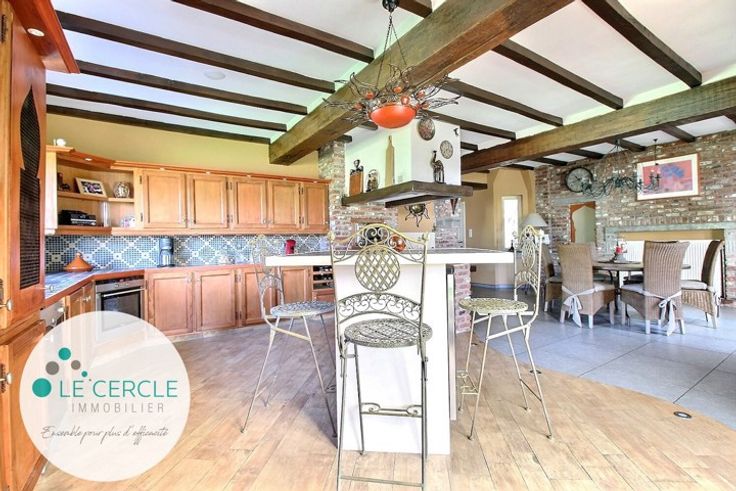 HAINE-SAINT-PAUL: rare et charmante propriété 4 façades bâtie sur un terrain de plus de 20 ares. Son agencement (2 parties communicantes) et ses différentes entrées permettraient d'y vivre et d'y exercer une activité professionnelle indépendante. La première bâtisse est composée d'une salle à manger (20,77m²) avec cassette à bois, d'un bureau (10,74m²), de 2 chambres (11m² et 15,77m²), d'un WC séparé (2,46m²), d'un grenier aménagé sur 2 niveaux (31,07m²) avec possibilité de 4ème chambre et d'un accès aux caves (22,24m²). La seconde bâtisse comprend le salon (45,50m²) avec bar et grande cheminée avec cassette à bois, la cuisine équipée avec coin à manger (49,15m²), la salle de bain et de douche (14,56m²), la buanderie (4,53m²) avec un accès extérieur et la chambre parentale avec placards intégrés (26,50m²). Rénovée avec goût au fil des années, elle est située dans un quartier calme et paisible à proximité des grands axes (BINCHE-MONS-CHARLEROI), des gares et des commerces. Elle vous séduira par son parfait état d'entretien, ses espaces et ses équipements de qualité: garage 2 voitures, vaste parking intérieur (plus de 6 voitures), anciens boxes à chevaux, châssis DV SCHUCO, piscine enterrée en béton, chauffée et éclairée (possibilité de nage à contre courant/profondeur max de 2m), chaudière connectée BUDERUS (2017) à faible consommation, diffusion musicale dans certaines pièces, alarme, camera et sonnette connectées, portail électrique, étang, pergola (22,41m²), barbecue, jardi