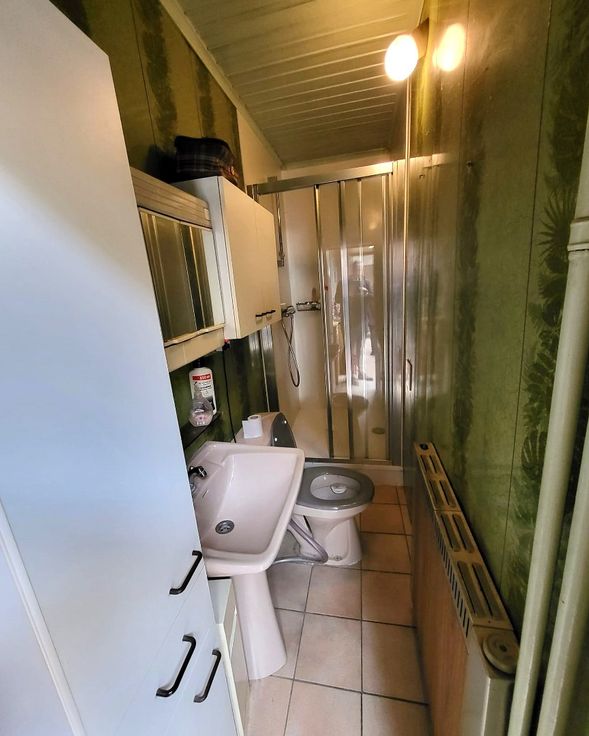 Op de verdieping zijn er 2 slaapkamers (12-16m²) en een af te werken zolderkamer van 9m².