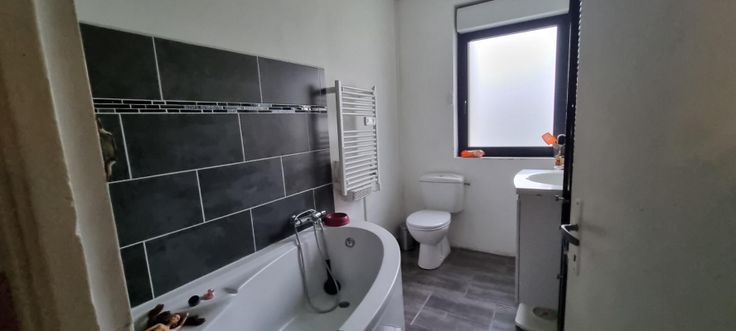Le 1er logement un T3 d'environ 90 m² de plain pied loué 600 euros il se compose::
