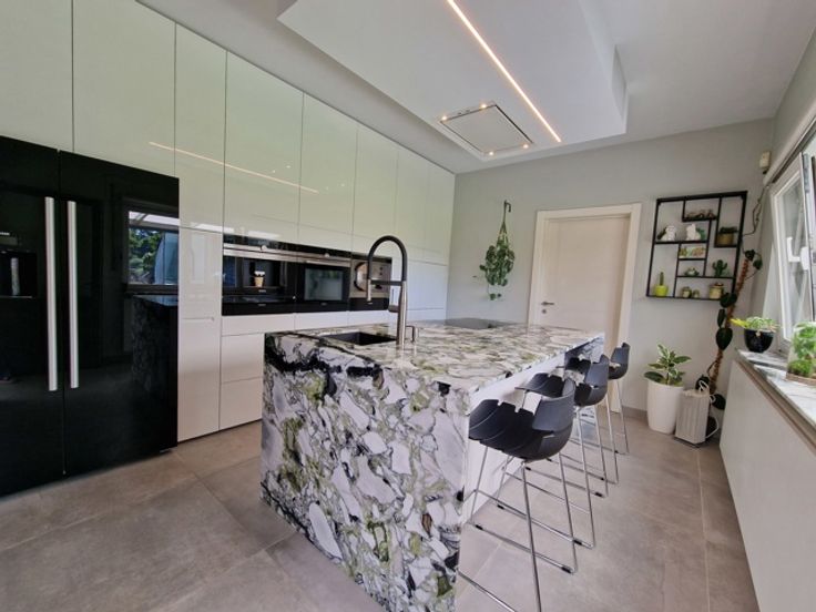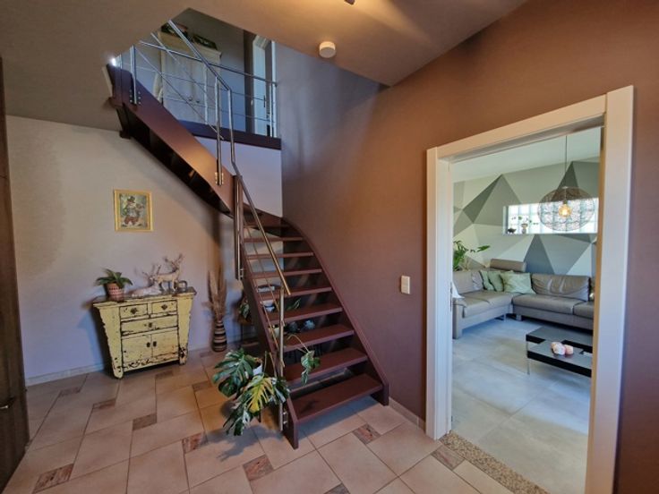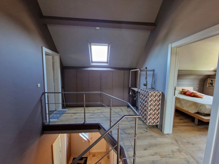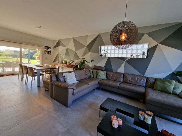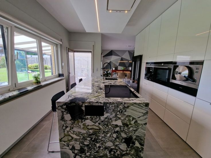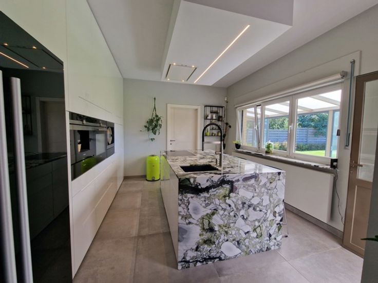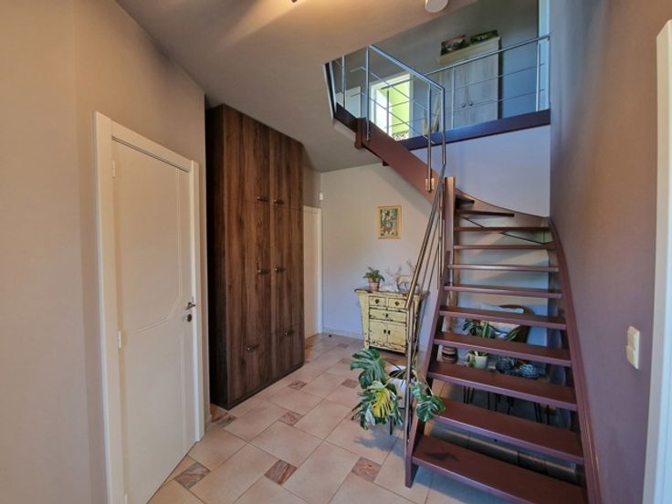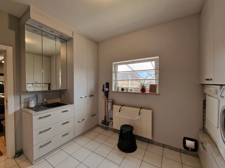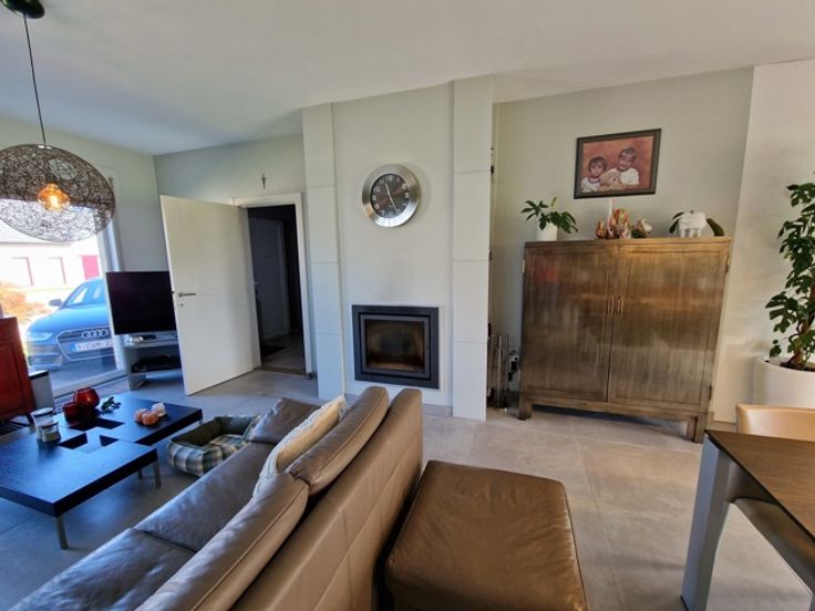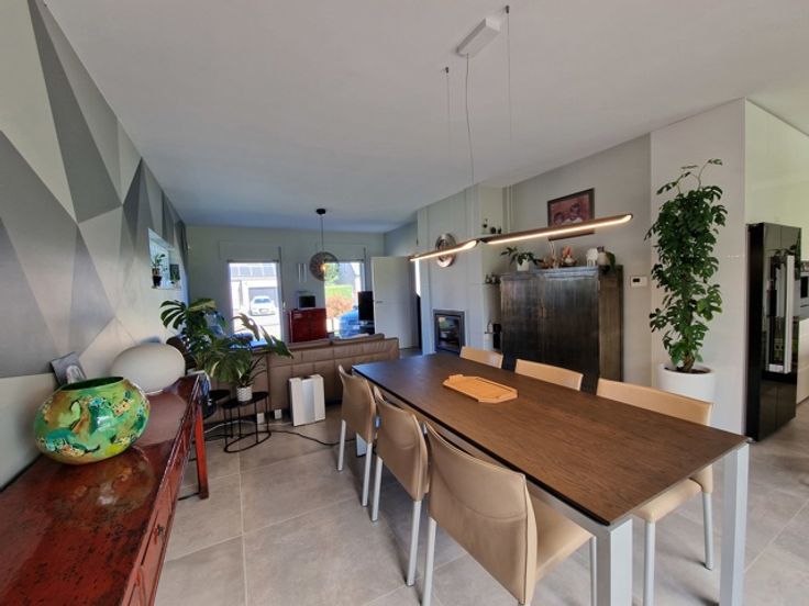 Deze instapklare villa bevindt zich in de Gordelstraat 51 te Waasmont (Landen). De villa werd ingericht door een interieurexpert en dit kunnen we zien aan de prachtige materiaalkeuze. We betreden de woning via de voordeur en komen in de prachtige open inkomhal met hoge plafond tot aan de nok. Er is een gastentoilet en een inbouwkast voor jassen. Rechts bevindt zich de woonkamer. De woonkamer heeft een zithoek met open haard (casette) en een eethoek. De eethoek grenst aan de prachtige volledig ingerichte keuken. Het eiland bestaat uit marmer. Er is een inbouw koffiemachine, oven, stoomoven en Amerikaanse frigo. Via de keuken hebben we toegang tot de volledig ingerichte wasplaats (inbouwkasten). De inpandige garage heeft een automatische poort en nog een extra keuken. Op de eerste verdieping zijn er 3 grote slaapkamers met inbouwkasten. De slaapgang bevat nog extra inbouwkasten. Er is een badkamer met dubbele lavabo, bubbelbad, douche en toilet. Tevens is er een grote dressing aanwezig. De zolder is toegankelijk via een trapladder. De woning is volledig onderkelderd en de kelder is droog dankzij de verluchtingsraampjes. Via de keuken komen we in de veranda waarbij de raampartijen volledig opengeschoven kunnen worden, zodanig dat het een overdekt terras wordt. Hier is er een eetplaats, zitplaats en plaats voor jacuzzi. Rechts van de woning is een serre. Links van de woning is een carport. De tuin heeft prachtige vergezichten over weides en velden. Er zijn 34 zonnepanelen. E