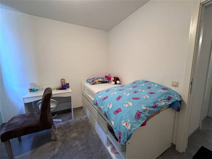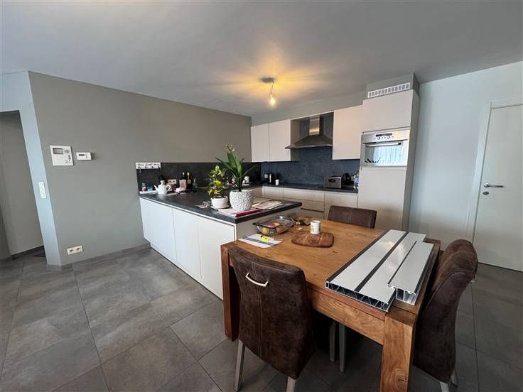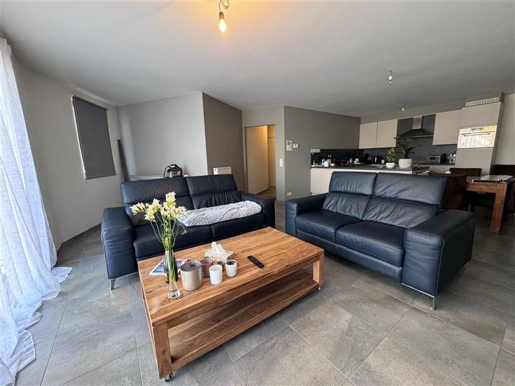 Leuk appartement omvattende inkomhal, WC, berging, ruime woonkamer met open keuken, terras en twee slaapkamers & terras. Kelder (B1) en auto-staanplaats (P1) inbegrepen