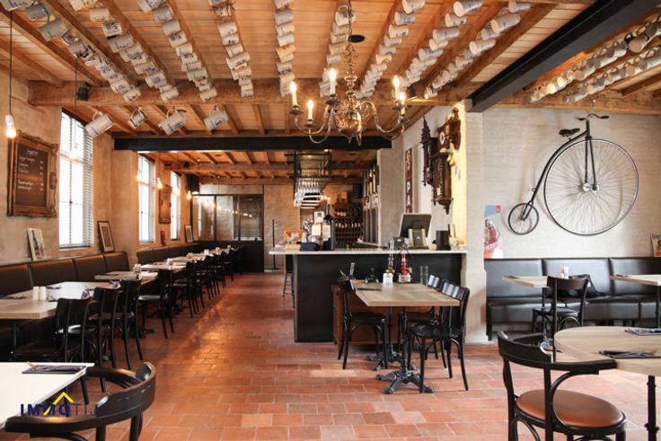 Het gebouw is eigendom van de brouwerij en biedt plaats aan zo'n 48 zitplaatsen binnen, 40 zitplaatsen op het terras vooraan en 40 op het terras achteraan.