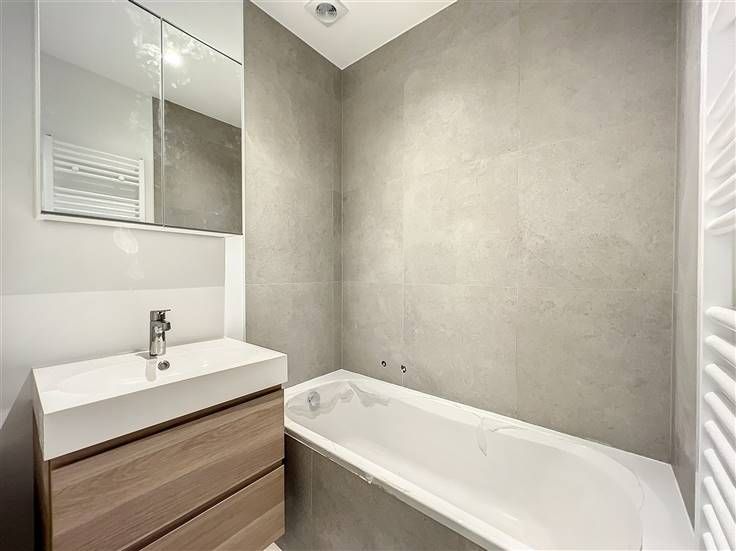 Ukkel - Kwartier Molière-Longchamps, vlakbij de Rue Vanderkindere, licht appartement met 2 slaapkamers van ±70 m² met tuin volledig gerenoveerd in 2022 gelegen op de begane grond van een gebouw. Het bestaat uit een hal met een apart toilet, een lichte woonkamer van ±30 m² met een nieuwe open keuken volledig uitgerust (oven, magnetron, kookplaat, afzuigkap, koelkast, vriezer, vaatwasser) die toegang geeft tot de tuin van ±25 m², 2 mooie slaapkamers van ±15 en 10 m², een badkamer (bad/douche, wastafel), een aparte wasruimte en een kelder. Het is uitgerust met een woonkamer, met een aparte keuken, met een balkon en met een kelder. Kosten: 175€/maand (voorziening: gemeenschappelijk, verwarming, water). Dicht bij het Duden Park, winkels, restaurants, transportmiddelen (tramhalte Vanderkindere, bushalte Coghen). Garagebox 125€/maand (verplicht). De metingen worden ter indicatie gegeven. Positieve punten: ligging +++, renovatie 2022, tuin. Onmiddellijk beschikbaar! Info en bezoeken: 0474/32.54.05