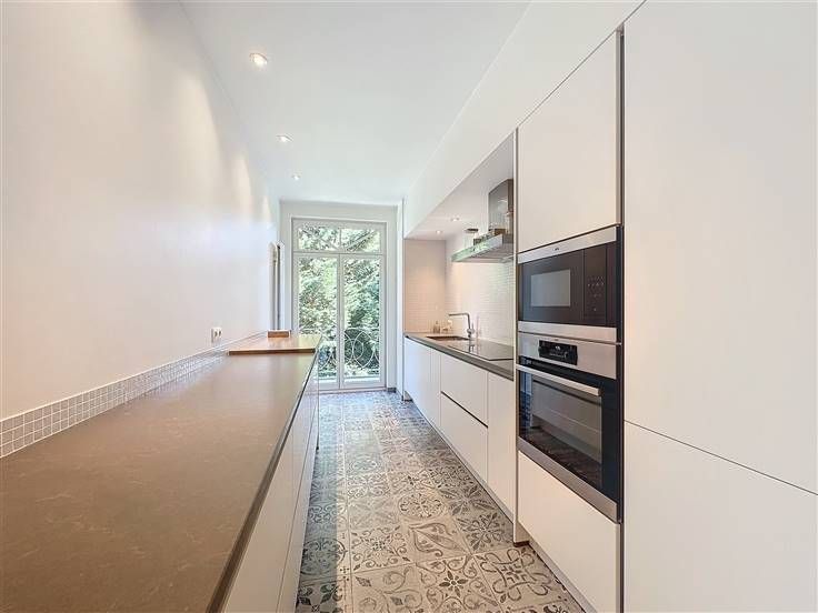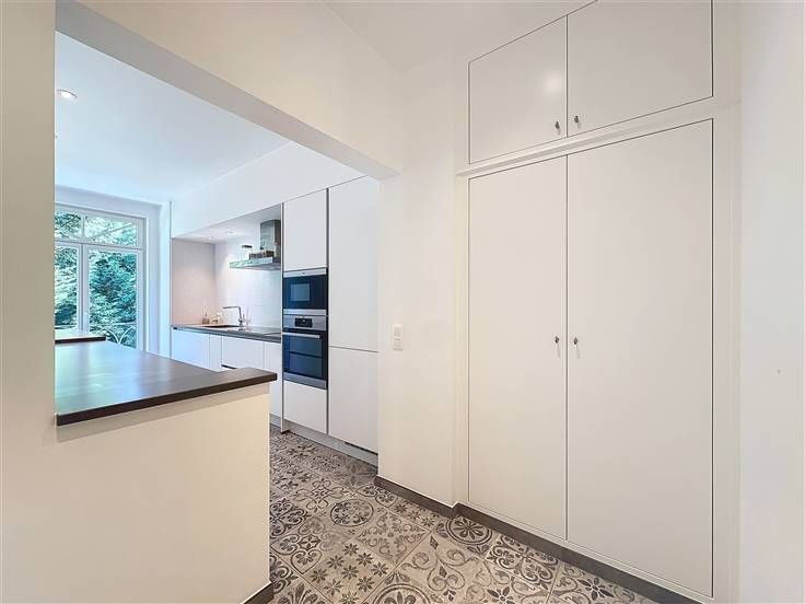 Bezoek deze woning met Christopher: 0478/07.34.26 // Oudergem, op een steenworp afstand van Val Duchesse, een zeer mooi 3-slaapkamer appartement van ±154 m² volledig gerenoveerd in 2024 met een terras en een balkon, gelegen op de 1e verdieping van een klein hoogstaand gebouw omgeven door groen. Het bestaat uit een inkomhal van ±10 m², een lichte woonkamer van ±46 m² met een decoratieve open haard en toegang tot een zuidgericht terras van ±17 m², een volledig uitgeruste keuken van ±10 m² (oven, kookplaat, afzuigkap, koelkast, vriezer, vaatwasser) en toegang tot een noordgericht balkon van ±3 m², een nachthal met veel opbergruimte en een aparte toilet, 3 slaapkamers van ±17, 15, en 12 m² met kasten, een en-suite badkamer (bad, wastafel, toilet, uitgeruste wasruimte), een en-suite doucheruimte (douche, wastafel) en een kelder. Verwarming op gas, uitgeruste wasruimte, dubbele beglazing, gepantserde deur, parlofoon, alarmsysteem. Kosten: 300€/maand (provisie: gemeenschappelijke ruimtes, verwarming, warm en koud water, onderhoud van het pand). Een garagebox (verplicht): 150€/maand en een binnenparkeerplaats (verplicht): 100€/maand. Positieve punten: uitstekende locatie, zuidgericht terras met uitzicht, kwalitatieve renovatie, helderheid, PEB: C. De afmetingen zijn indicatief. Beschikbaar vanaf 15/08/2024.