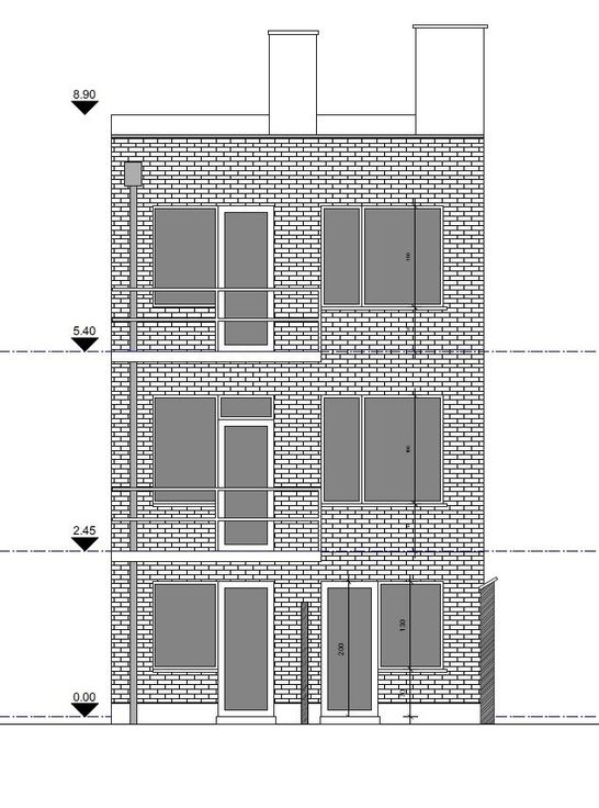appartementsgebouw (building) met garage en 2 bovenliggende appartementen.