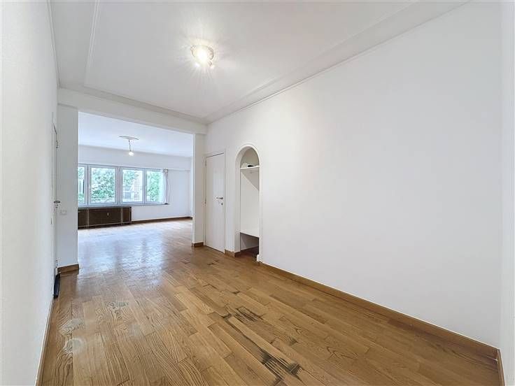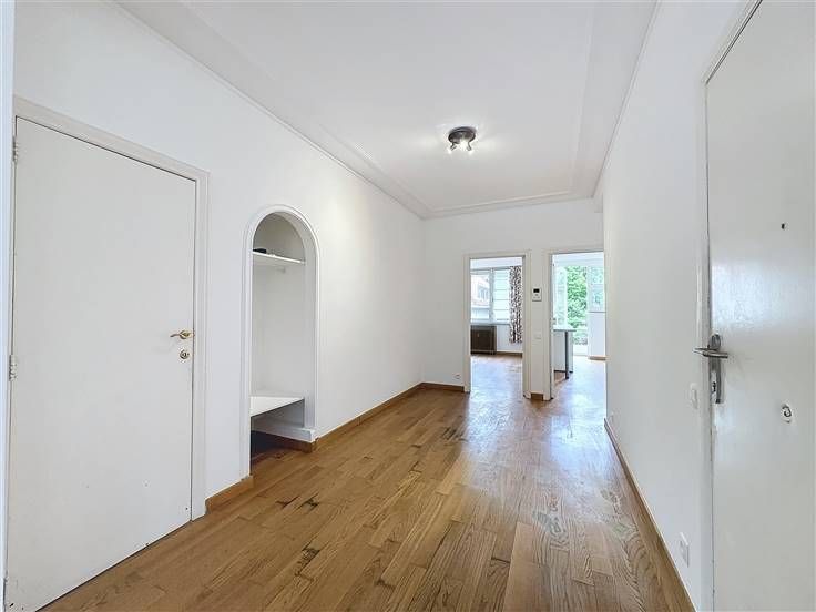 Visit this property with Nathalie: 0474/57.30.94 // Ixelles, Solbosch district, a stone's throw from the Bois de la Cambre, ULB, and the Ixelles Cemetery, bright 1-bedroom apartment with a balcony of ±83 m² located on the 1st floor of a well-maintained building situated in the heart of a highly appreciated neighborhood surrounded by excellent small shops, schools, sports clubs, restaurants, a market, and close to public transportation. It consists of an entrance hall of ±11 m² with a cloakroom and a separate toilet, a bright living room of ±28 m², an equipped kitchen (oven, ceramic hobs, hood, fridge, freezer) with access to the east-facing balcony of ±4 m², and a bedroom of ±16 m² with an en-suite bathroom (shower, sink, equipped laundry room). PVC double-glazed windows, parquet floors, communal gas boiler, intercom. Charges (provision): ±200€/month (common areas, cleaning of common areas). Large garage box (mandatory): ±150€/month. Highlights: excellent location, brightness, surrounded by many shops, public transportation, restaurants, schools, close to the Bois de la Cambre. Measurements are given for information purposes. Available immediately!