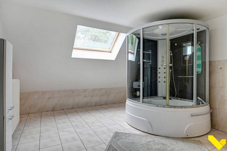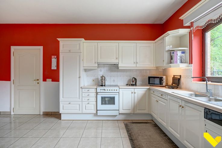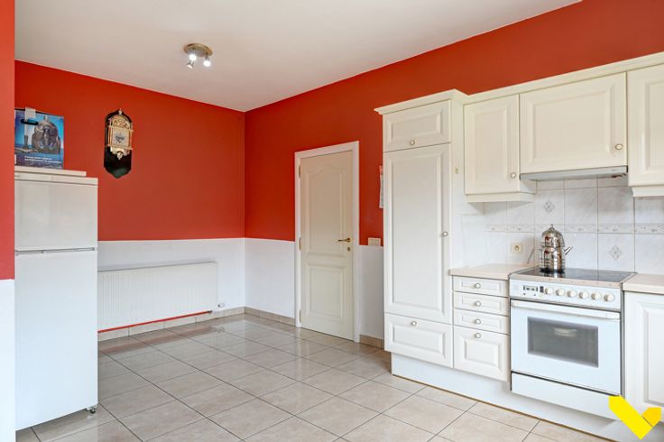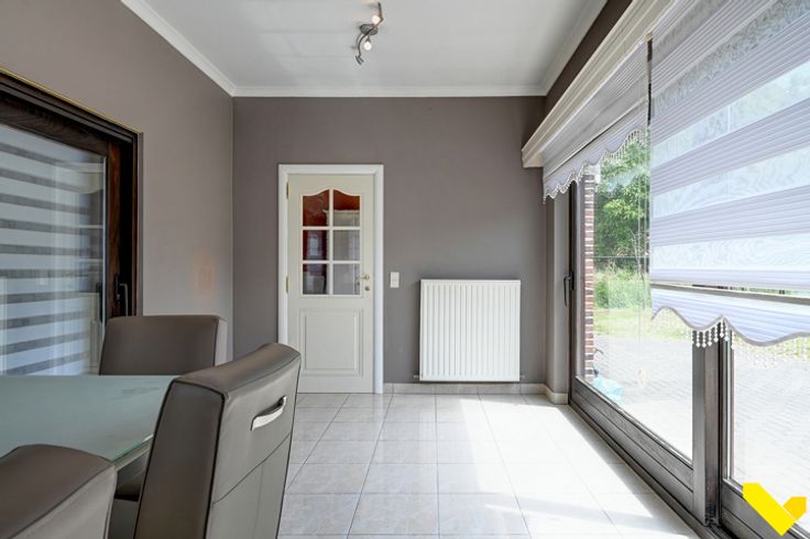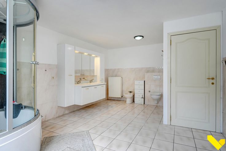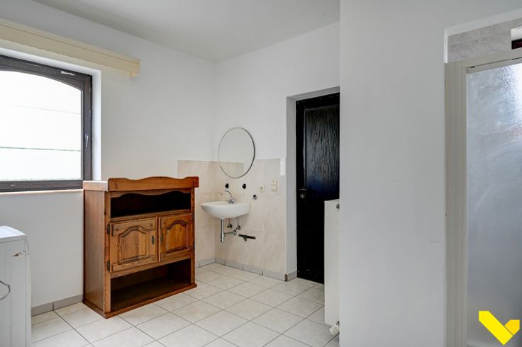 Verder hebben we op het gelijkvloers nog een grote keuken, een aparte veranda, een douchekamer en een bergplaats.