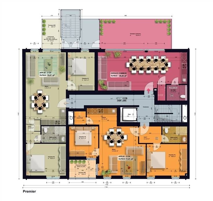 Sorry er is geen nederlandse vertaling beschikbaar. A deux pas du centre Ville d'Arlon, W Immobilière vous propose ce nouveau projet constitué de 9 appartements (1,2,3 chambres) avec terrasses en cours de construction. Pour votre futur logement, pour un investissement ou pour un premier achat, vous y trouverez l'appartement qui vous convient, vous offrant tout le confort moderne et proche de toutes les commodités. Dans la philosophie du "VIVRE ENSEMBLE", vous profiterez d'un espace commun de plus de 51m² équipé d’une cuisine et d’un wc PMR avec une grande terrasse spacieuse de 32m² dotée d’une belle orientation qui pourra vous permettre : - de partager des moments conviviaux entre voisins, en famille, entre amis - d’effectuer des réunions, du coworking, des activités culturelles ou festives… Bâtiment très basse énergie jouissant d’une excellente situation avec accès direct à la gare et au centre-ville d’Arlon. Les biens sont équipés de pompes à chaleur individuelles, de châssis double vitrages et de panneaux photovoltaïques, avec finitions personnalisables. Les prix annoncés s’entendent terrain + construction hors frais de vente (TVA, Enregistrement, notaire, acte de base, frais de raccordement ), cave et parking non compris. Pour tous renseignements: W Immobilière - 063 227 277 - www.wimmobiliere.com Les informations fournies par l’agence ont un caractère indicatif et non contractuel. En conséquence, elles ne peuvent engager