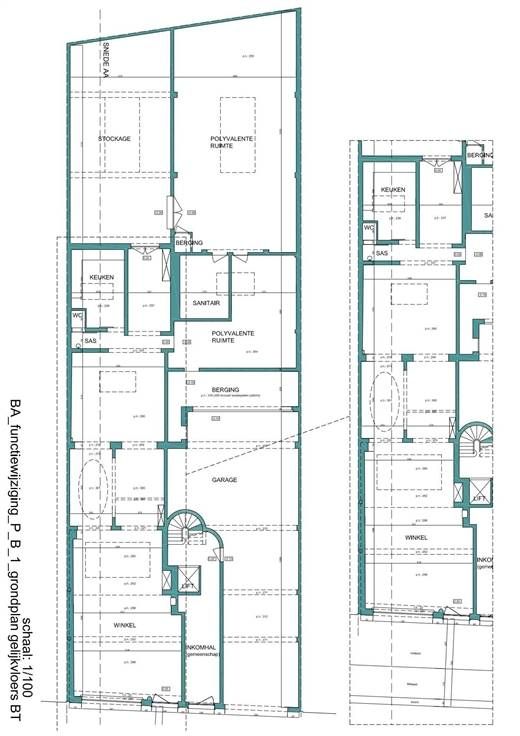 Zeer ruim handelsgelijksvloers met verschillende mogelijkheden (dansstudio, fitness, horeca, supermarkt, praktijkruimte, kantoren, enz...)