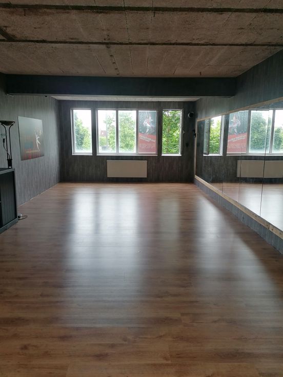 Te huur commerciële ruimte van +/- 500m² momenteel verhuurd door een danszaal. het pand is verdeeld over 3 niveaus op de GV , een inkom , op de 1e verdieping de danszal en 2 appart ruimtes. Op de 2e verdieping een extra ruimte met een keuken. geschikt voorFitness, bokszaal,...
