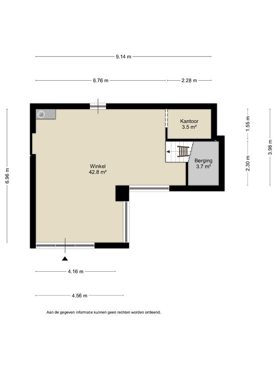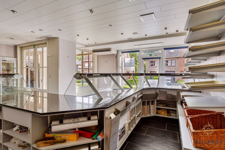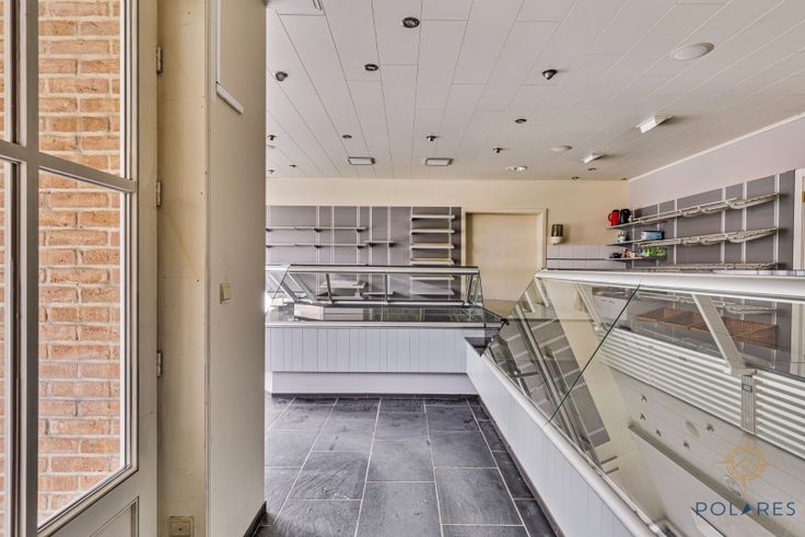 Op de gelijkvloerse verdieping beschikt u over een winkelruimte van ± 43 m², een aparte bureau en een bergruimte.