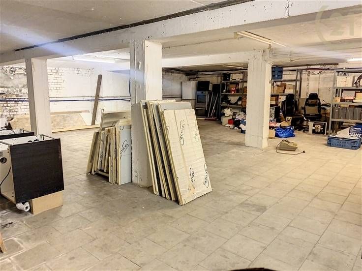 Op de begane grond is een ruime opslagruimte voor een zelfstandig bedrijf met een oppervlakte van +/- 150m² + mezzanine van +/- 60m².