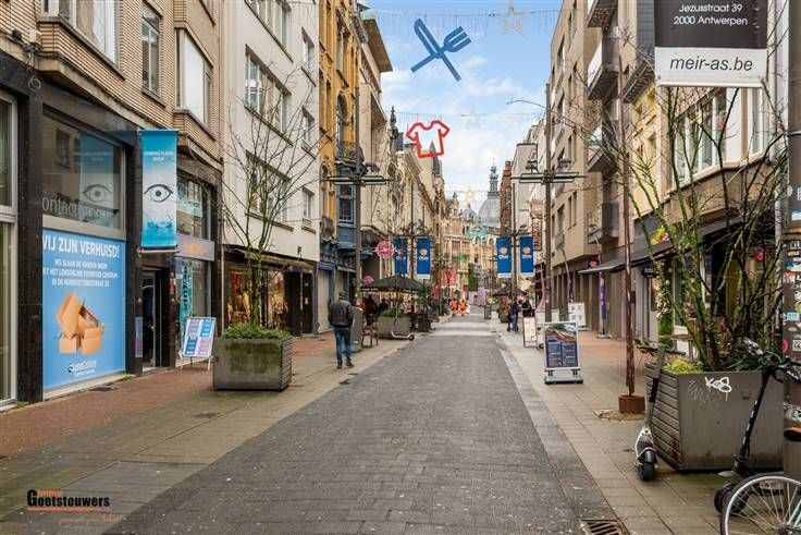 Ruime, modern ingerichte handelszaak met een gelijkvloerse oppervlakte van 120m² , volledig uitgerust met o.a. ingemaakte kasten en vast meubilair. Via een centrale trap bereik je de mezzanine/ bureauruimte van 53m² op de tussenverdieping. Zeer goed gelegen in zijstraat van de Meir. Alle ramen en toegangsdeur worden nog vervangen.
