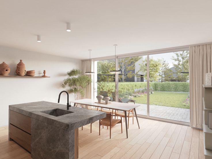 Deze hedendaagse, duurzame nieuwbouw BEN woningen (Epeil max 30 - voorzien van een geothermische warmtepomp en zonnepanelen) bevinden zich op de hoek van de Anemonenstraat en de Bremstraat langsheen een rustige, groene en verkeersluwe nieuwe wijk, Ligusterhof, vlakbij centrum Beveren. Gelegen te midden van een groene woonwijk, biedt dit uniek project, in samenwerking met de Gemeente Beveren en Vlabo, een oase van rust en vooruitstrevendheid. Mis deze kans niet om thuis te komen in een omgeving die klaar is voor de uitdagingen van morgen! In eerste fase verkopen we 11 woningen met bewoonbare oppervlakten tussen de 160m² en de 201m².  Deze woning voorziet op het gelijkvloers een ruime leefruimte met open keuken, berging, inkomhal met plaats voor een vestiaireruimte en een gastentoilet. De eerste verdieping beschikt over 2 slaapkamers, een badkamer en apart toilet. Via een vaste trap bereikt u de zolderverdieping die een 3de slaapkamer en een bergruimte heeft. De woning voorziet een mooi terras met gezellige privé tuin die achteraan beschikt over een fietsenberging en een achteruitweg. Daarnaast worden er vooraan op het terrein 17 carports voorzien, waardoor het overige terrein verkeersluw blijft. *Verkoop onder voorwaarden, vraag er naar! Dit zelfde project voorziet ook 18 BEN appartementen. Benieuwd naar één van deze BEN-woningen? Contacteer ons dan snel voor meer informatie en/of een gesprek bij ons op kantoor via verkoop@homevast.be of bel ons op het nummer 03 344 77 44.