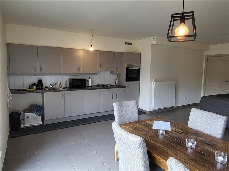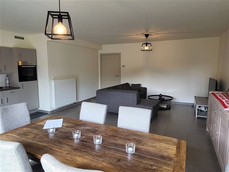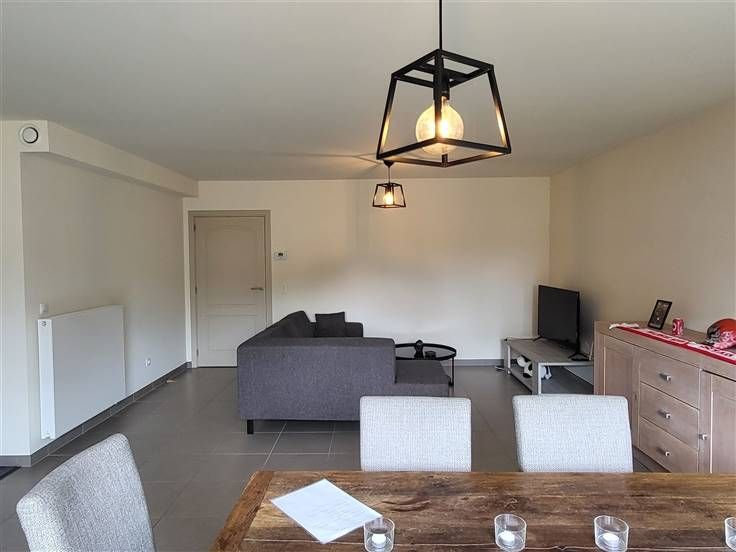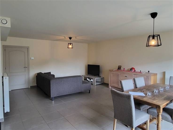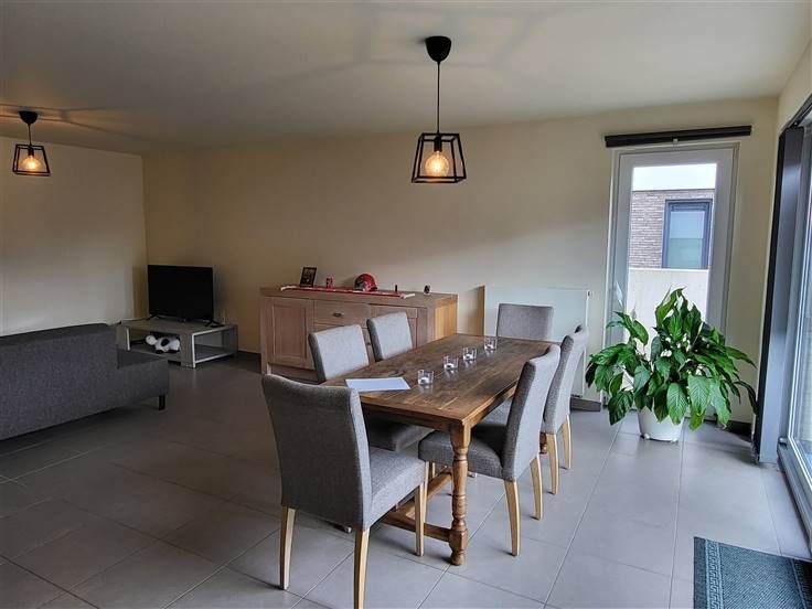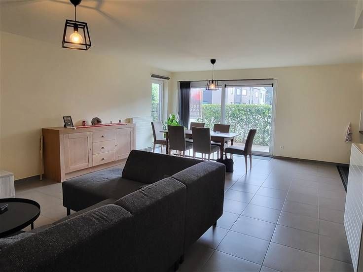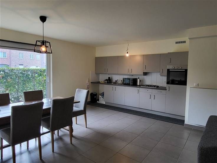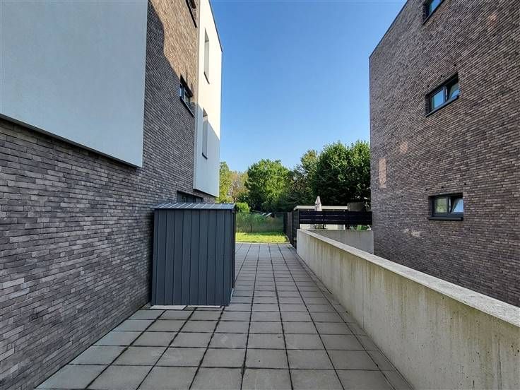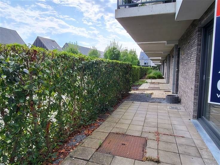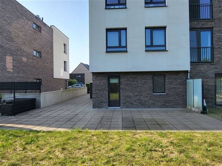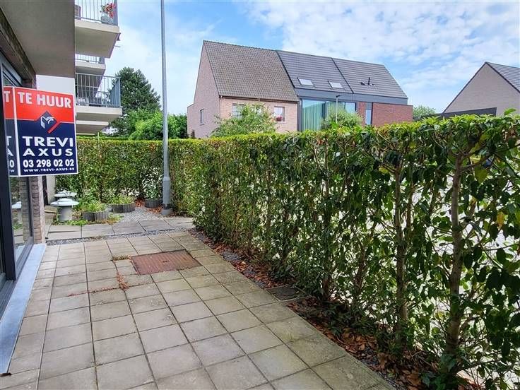 COMFORTABEL, ENERGIEZUINIG EN RECENT GELIJKVLOERS-APPARTEMENT 89M² MET 2 SLAAPKAMERS, RUIME TERRAS (60M²), TUIN, ONDERGRONDSE AUTOSTAANPLAATS EN KELDERBERGING. Rustige ligging in kindvriendelijke en autoluwe verkaveling nabij centrum met vlotte bereikbaarheid via N16 en A12. Inkomhal / wc met handwas / living met eetplaats en ingerichte open keuken (totale opp.: 41m²) / 2 slaapkamers (4,3 x 2,9m; 3 x 3,3m) waarvan de grootste kamer met toegang tot ruim terras / douchekamer met wastafel en douchecabine / berging met wasplaats. Autostaanplaats in ondergrondse garage / kelderberging. Lasten: € 95 / maand.