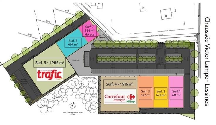 Sorry er is geen nederlandse vertaling beschikbaar. Nouveau RETAIL PARK de +-6.800m2 - Livraison prévue janvier 2024 - Le Long de la N57 - +-11.700 voitures/jour - Surface commerciale de +- 328m2 - Renseignements : eric.legrand@immolegrand.com - 0475/69.48.62 - www.immolegrand.com