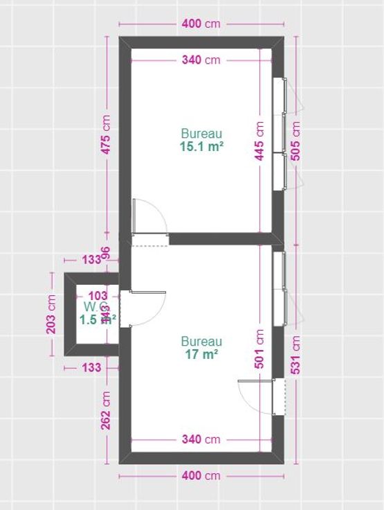 Composé de 2 pièces avec fenêtres et d'un local WC.