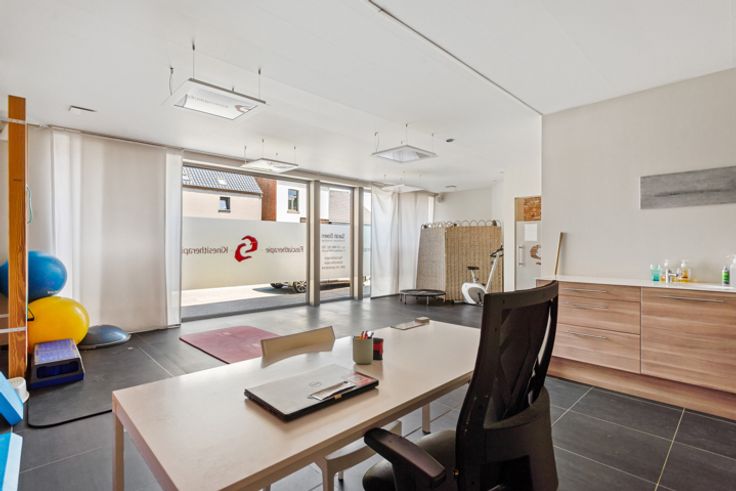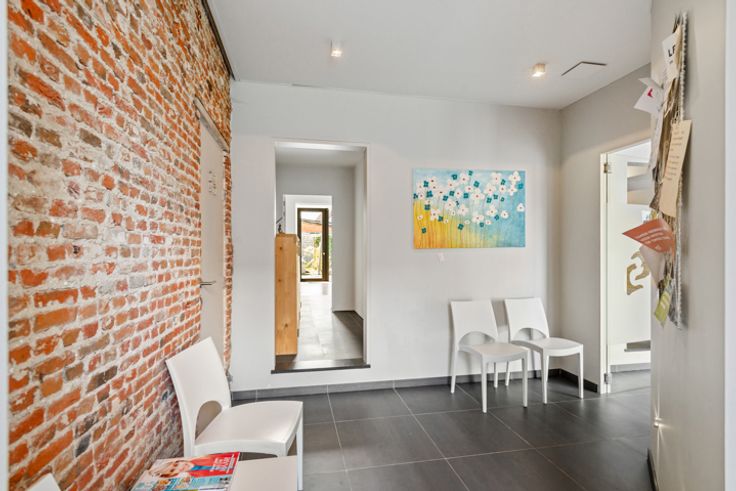 Voor je binnenkomt, word je begroet door een klassieke gevel versierd met grote ramen, ideaal voor diverse doeleinden. Deze commerciële ruimte beschikt over twee aparte grote delen. Je vindt vooraan op ongeveer 90 vierkante meter een hoogwaardig afgewerkte ruimte, met veel natuurlijk licht en een uitnodigende sfeer. Deze ruimte is o.a. ideaal als dokterspraktijk of kinesistenpraktijk en talloze andere activiteiten je ondernemersvisie tot leven te brengen.