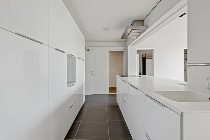 Het tweede gedeelte achteraan bestaat uit 41 vierkante meter en beschikt over een moderne ingerichte keuken en een terras van 26 vierkante meter.