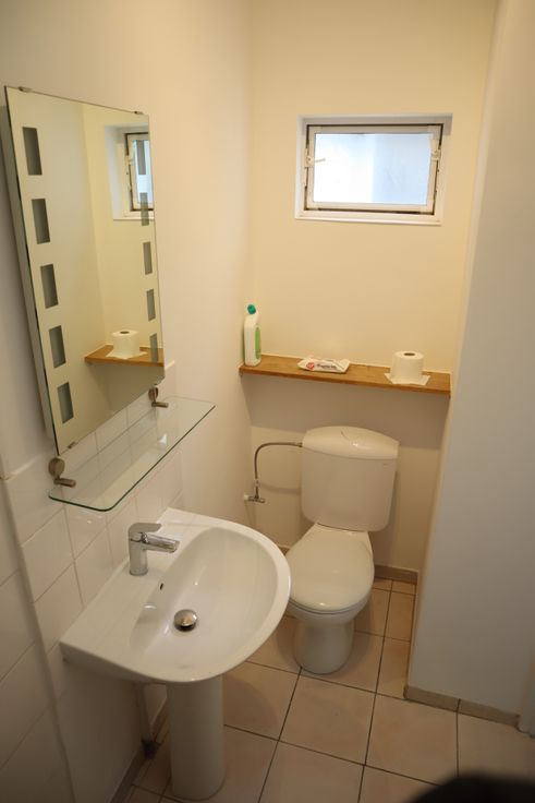 Cette colocation est composée de 2 chambres individuelles avec sa salle de douche privative, d'un séjour commun, d'une buanderie avec toilette commune, d'une cuisine hyper-équipée commune ainsi qu'une cour privative commune.