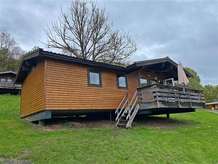 MCA Immobilier biedt u deze chalet n°179 op het park Vallée les Etoiles vlakbij Dinant, midden in de Ardennen op een eigen terrein van 253 m². Deze chalet, gerenoveerd in 2008, is geschikt voor 6 personen. Het bestaat uit een mooie, lichte woonkamer met salon, eetkamer en halfopen keuken. Dan zijn er nog 3 slaapkamers en een badkamer met douche. Buiten geniet je van een zonnig terras. Let op: dit is een vakantiepark, dus het is niet toegestaan om hier te wonen. Het park is tweetalig. Parkkosten: ongeveer €4.000/jaar. Info & bezoek: 086/32.36.76 - info@immomca.be