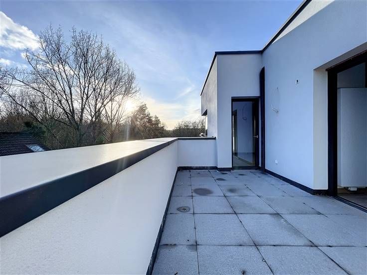 Ukkel, prachtige 3-slaapkamer flat ±112m² gelegen op de bovenste verdieping van een passiefgebouw gebouwd in 2022, gelegen nabij het Fort Jaco. Het bestaat uit een hal, een woonkamer van ±52m² met een open volledig ingerichte keuken (oven, inductiekookplaat, afzuigkap, magnetron, koelkast, vriezer, vaatwasser) die toegang geeft tot twee terrassen (één aan de voorzijde en de tweede aan de achterzijde met uitzicht op het groen), twee slaapkamers van ±16 en 14m², waarvan één met een dressing, een badkamer van ±9m² (bad/douche, wastafel en toilet) en een wasruimte. Op de bovenverdieping is er een derde slaapkamer van ±15m² met aangrenzende badkamer (douche, wastafel, toilet). Kosten: 140€/maand (voorziening: gemeenschappelijke ruimtes, schoonmaak van gemeenschappelijke ruimtes, verzekering). Dubbele beglazing, lift, videofoon, gepantserde deur. Positieve punten: zeer laag verbruik (PEB A), ligging +++, nieuw gebouw, kwaliteitsmaterialen en uitrusting, tramhalte "Alphonse XIII" op 5min lopen, dicht bij Fort Jaco. Mogelijkheid om een garage te huren (130€/maand). Onmiddellijk beschikbaar! De metingen worden ter indicatie gegeven. Bezoeken en informatie over 0474/32.54.05
