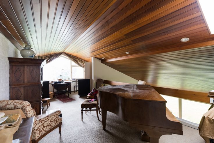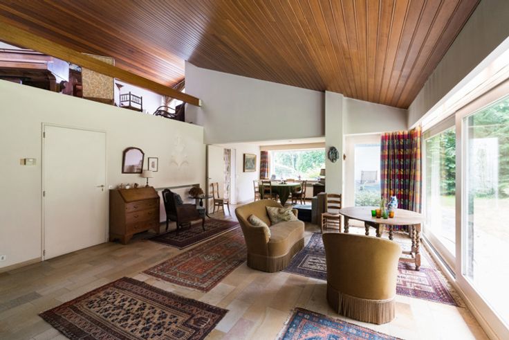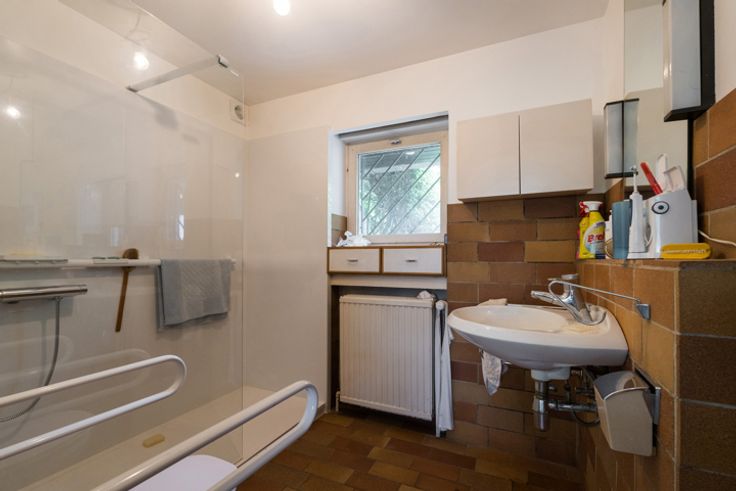 Begane grond (dagkant) : Inganghal met vestiaire en gastentoilet, woonkamer met open haard, open eetkamer, semi-ingerichte keuken en terras. In galerij een mooie open ruimte ideaal voor een kantoor of family room en grote zolderruimte.