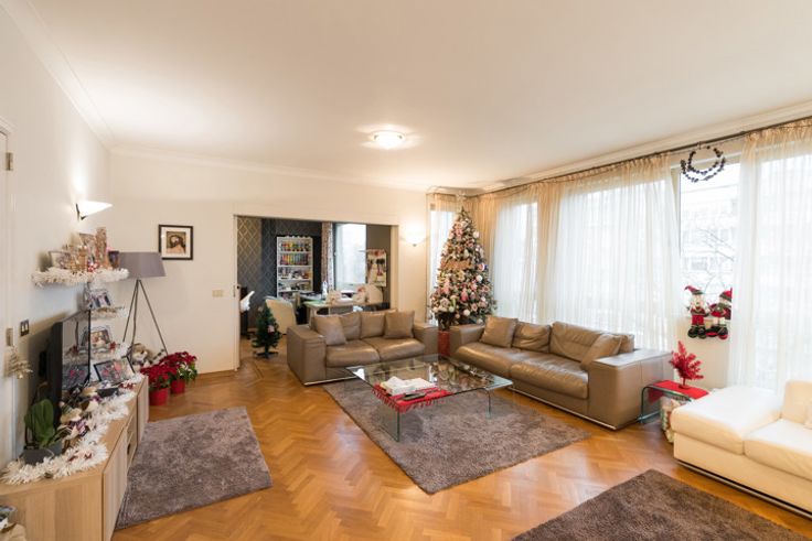WOLUWE-SAINT-LAMBERT, gelegen op een steenworp afstand van het Montgomeryplein op de 5e verdieping van een luxe gebouw, prachtig APPARTEMENT (3 slpk/2 badk) van +/- 220m² bewoonbare oppervlakte met terras, garagebox en twee parkeerplaatsen. Het bestaat uit een grote inkomhal van 14m² (marmer), vestiaire met gastentoilet, ruime woonkamer van 35m² (parket), eetkamer (parket), achterkeuken met wasruimte (tegelvloer), volledig uitgeruste keuken (tegelvloer) met toegang tot het terras, bureau (parket), nachthal met toegang tot 2 slaapkamers van elk 14m² (parket), badkamer (bad, douche, wc, 2 wastafels - tegelvloer), ouderlijke suite met dressing, badkamer (bad, douche, wc, bidet, 2 wastafels - tegelvloer) en grote slaapkamer van 18m² (parket) met toegang tot het terras. Het omvat ook een garagebox met parkeerplaats aan de voorkant van het gebouw, een tweede parkeerplaats en een kelder in de kelder. EPC C (143 kWh/m²/jaar). Elektriciteit niet conform (zal door de eigenaar worden aangepast voor de ondertekening van de akte). Te ontdekken bij L&P!