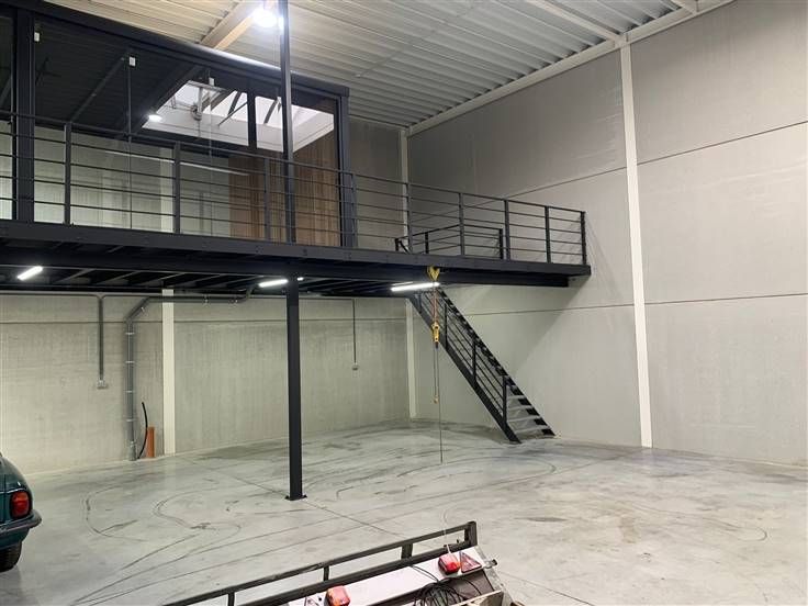 Deze gloednieuwe KMO-unit biedt een ideale werkruimte voor verschillende zakelijke doeleinden. De unit heeft een totaaloppervlakte van 144 m² en is uitgerust met een praktische mezzanine van 72 m², perfect voor extra opslag of als extra werkruimte.
