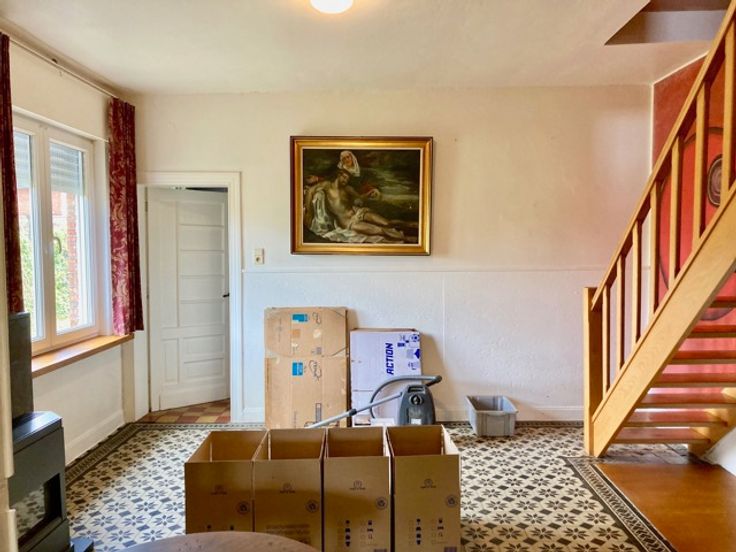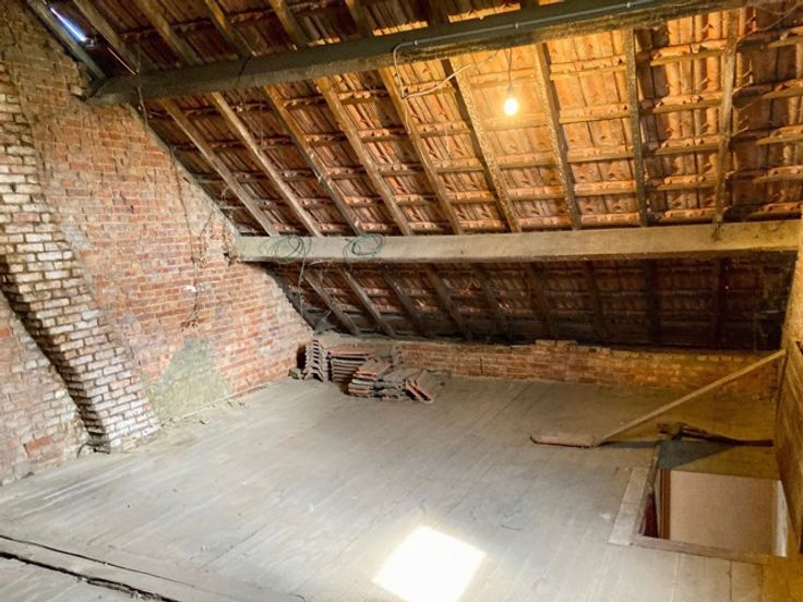 Op het gelijkvloers van deze woning vind je een mooie living met eetplaats, gevolgd door een kleine berging, een ruime keuken, en een apart toilet met een gang naar de tuin. Er bevindt zich nog een handige schuur die perfect kan dienen als opslagruimte, en niet te vergeten, een ruime en zonnige tuin waar je heerlijk kunt vertoeven. Boven zijn er twee slaapkamers, een badkamer en de mogelijkheid om een derde kamer in te richten naar eigen smaak. Verder een ruime onafgewerkte prachtige zolder! Als je graag je creativiteit de vrije loop laat, dan is dit de ideale plek voor jou! Bovendien zijn er mogelijkheden voor verlaagde verkooprechten of toepassing van de sloop- en heropbouwregels, waardoor deze woning ook voor investeerders interessante opportuniteiten biedt!