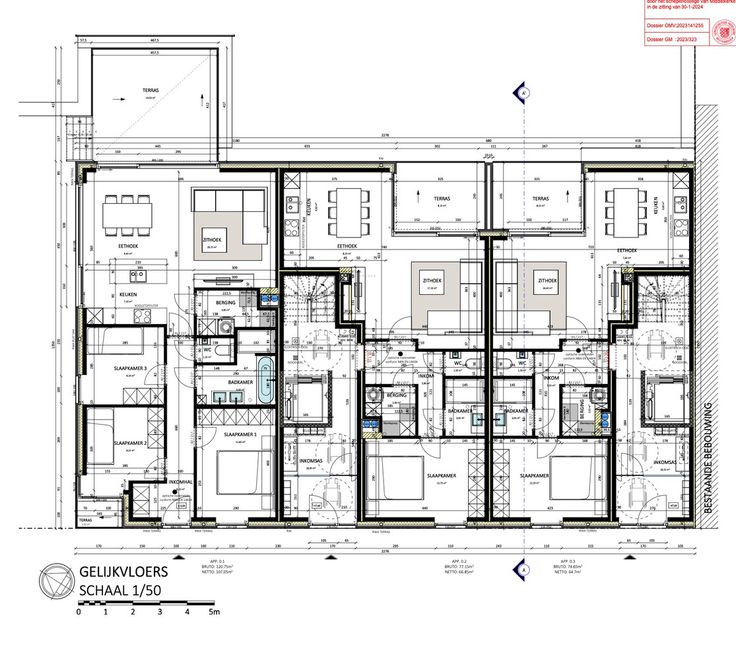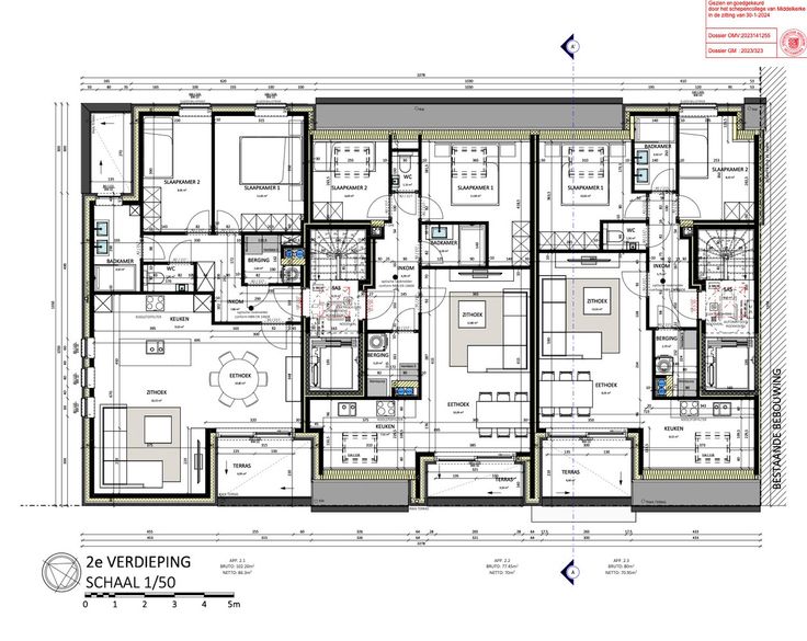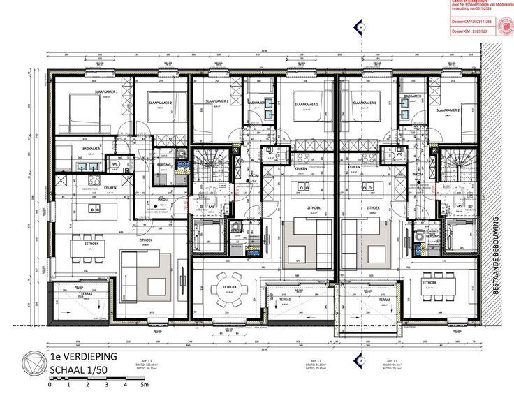 De oppervlaktes v/d appartementen variëren tussen 74m² en 120m².