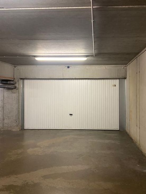 De garagebox bevindt zich in een veilig afgesloten parkeerruimte met een elektrische toegangspoort.