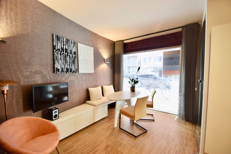 Magnifiek handelspand met een façade van 15 meter commercieel gelegen vlakbij de winkels en het strand. Indeling: verkoopruimte met ingerichte keuken en toilet. Atelier. Luxueuze studio met douchekamer en moderne open keuken. Het handelspand heeft een ideale ligging en biedt verschillende mogelijkheden. Van de winkelruimte kan 1 lichtrijke geheel gemaakt worden. Plafondhoogte van 2m70. Ideaal dus als showroom, winkel, vrij beroep. Op heden stoffen/decoratiewinkel met een mooi klantenbestand. Contacteer ons voor een bezoek.