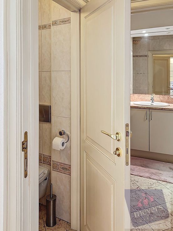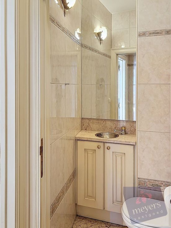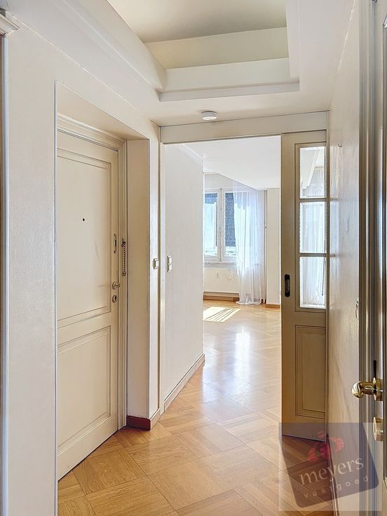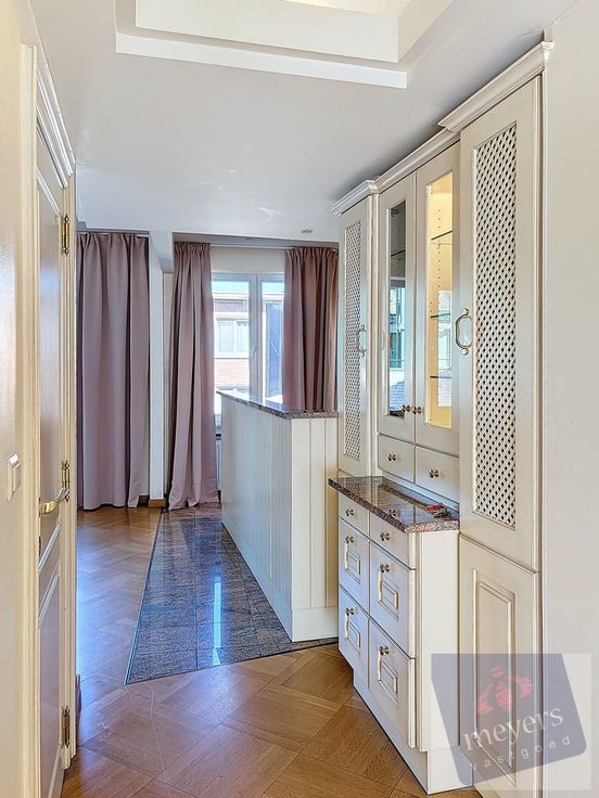 Momenteel is het een schitterend geheel met een uitnodigende inkomhal, een ruime keuken met eet- en zitgedeelte, en een zeer ruime, lichtrijke leefruimte. Het appartement beschikt verder over drie slaapkamers, twee badkamers (één met douche en één met bad), en twee toiletten. Daarnaast zijn er ook twee bergkelders in de kelderverdieping inbegrepen in de prijs.