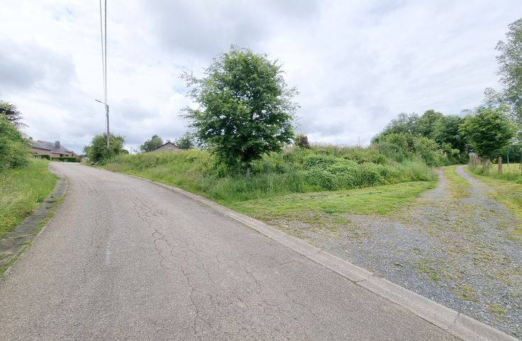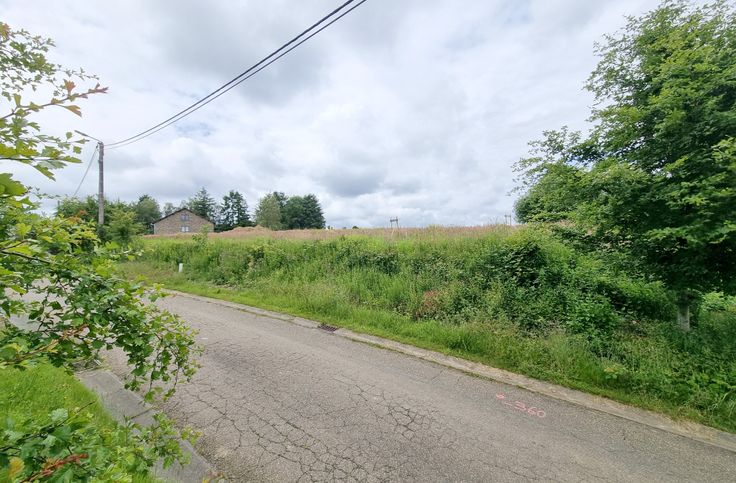 Deze zeer mooie bouwgrond van 11,72 are bevindt zich in een doodlopende straat, op de hoek gevormd door de straat en een pad dat er loodrecht op uitkomt. Een vergunning werd reeds afgeleverd voor de bouw van een eengezinswoning (foto n°2). De plannen van de woning zijn inbegrepen in de verkoopprijs. Het is niet verplicht het reeds goedgekeurde project uit te voeren.