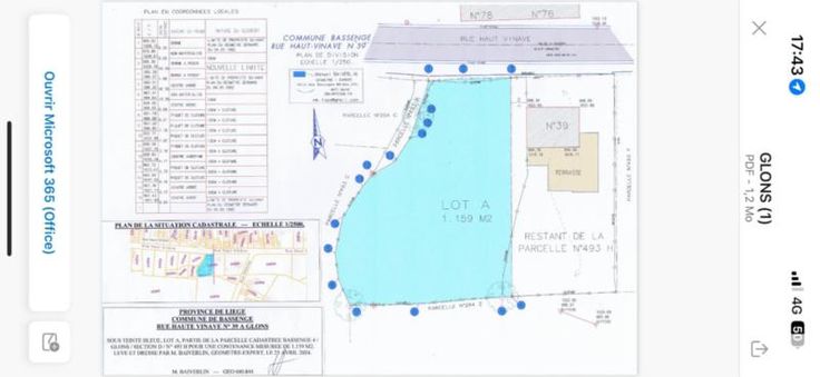 Terrain en zone d'habitat à caractère rural sis rue Haut Vinave à 4690 Bassenge. La parcelle possède une superficie de 1159m². Les renseignements urbanistiques ont été demandés; vous pouvez prendre contact également avec eux afin de savoir si votre projet est susceptible d'être accepté.