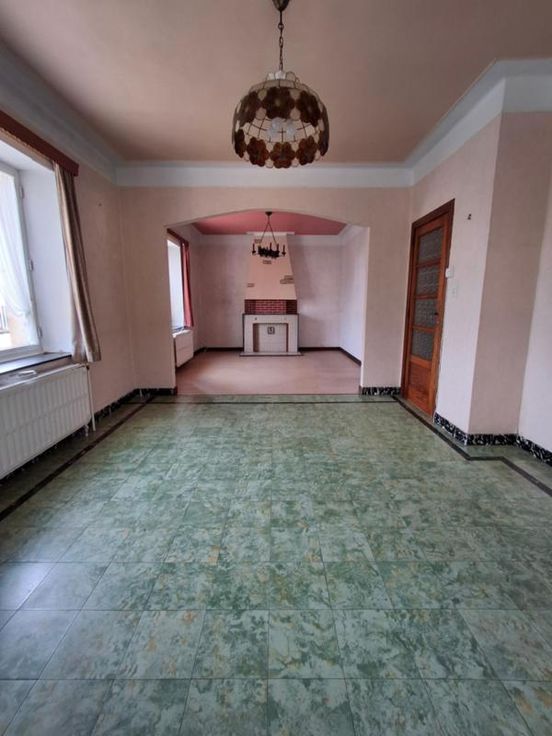 COMPRENANT : AU SOUS-SOL : caves sous tout le bâtiment, dont une buanderie et une chaufferie. AU REZ-DE-CHAUSSEE : hall d’entrée, petite cuisine non-équipée, salon – salle à manger, SDB avec WC, 2 chambres. AU 1 ER ETAGE : halle de nuit desservant 1 petite chambre, grenier. Châssis PVC double vitrage. Chauffage central au mazout et bois. Toiture Eternit. Grand jardin. Garage 1 voiture accessible par l’arrière du bâtiment. Proximité des grands axes, des écoles et commerces. Contenance totale de 21a 15ca R.C : 478 euros (possibilité de réduction de frais) PEB N° 20240527004183 - Classe G